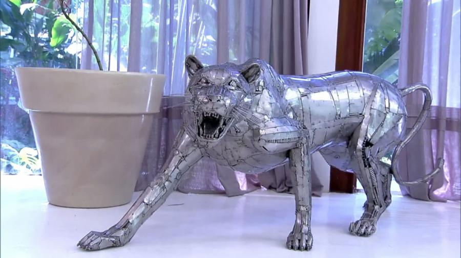 A escultura Onça no programa "Mais você" da Rede Globo 07-10-2015 Ze Vasconcellos Metal Sculptures