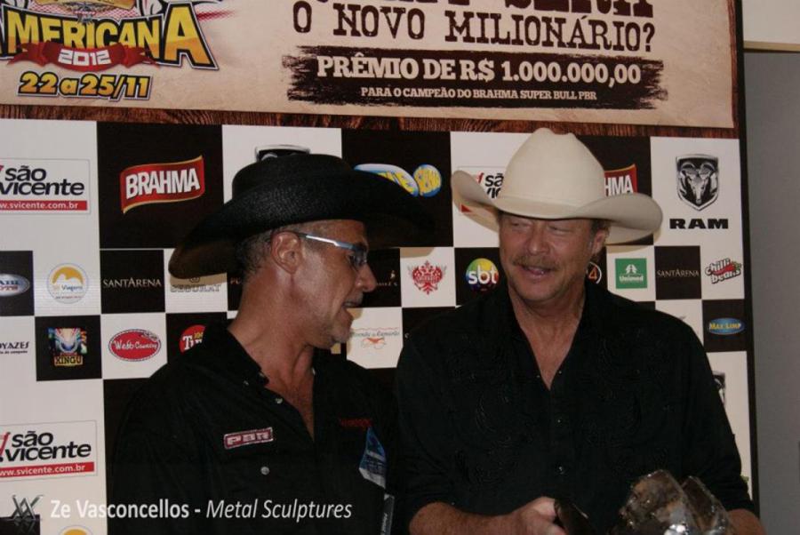 Ze Vasconcellos entregou o chapéu de inox pessoalmente ao cantor momentos antes de sua apresentação no Brasil.