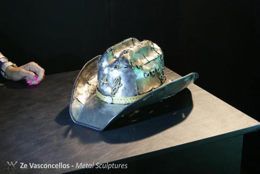 Description - Project designed especially for the gift of the American singer of country music - Alan Jackson. The stainless steel hat was given to Alan Jackson in the city of Americana - SP.