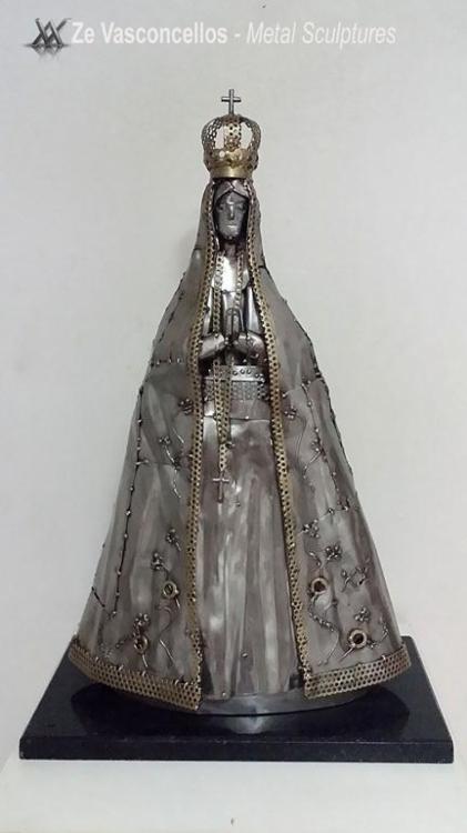 Description - Mini sculpture in recycled stainless steel of a Nossa Senhora da Aparecida, patron saint of Brazil.