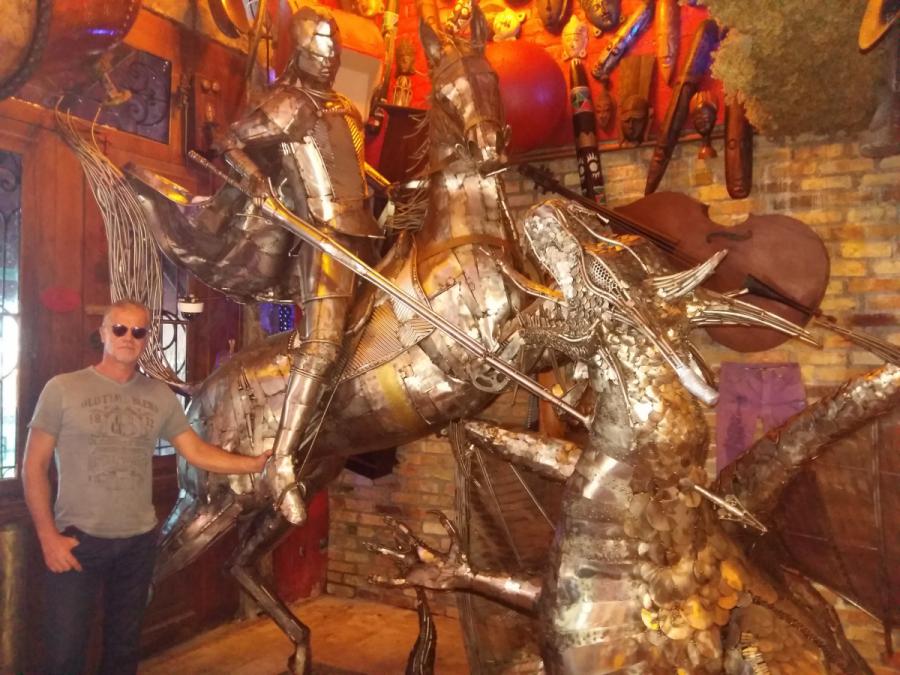 A ESCULTURA DE SÃO JORGE ESTA EXPOSTA NO INTERIOR DO RESTAURANTE MARIUS CRUSTACEOS NA PRAIA DE COPACABANA NO RIO DE JANEIRO!!!